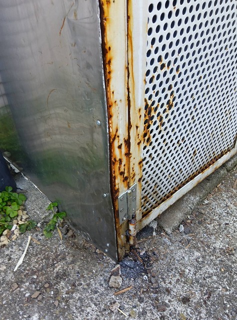 確認したところ腐食が進みあちこちに穴が開いていたので