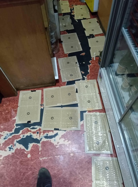 翌朝、営業開始前に捕獲用マットの回収に入りましたが、今回は残念ながら捕獲には至りませんでした。