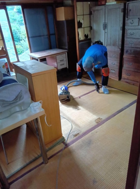 作業では、建物の損傷を防ぎつつ、通路の確保から分別・搬出までを一つひとつ丁寧に実施。